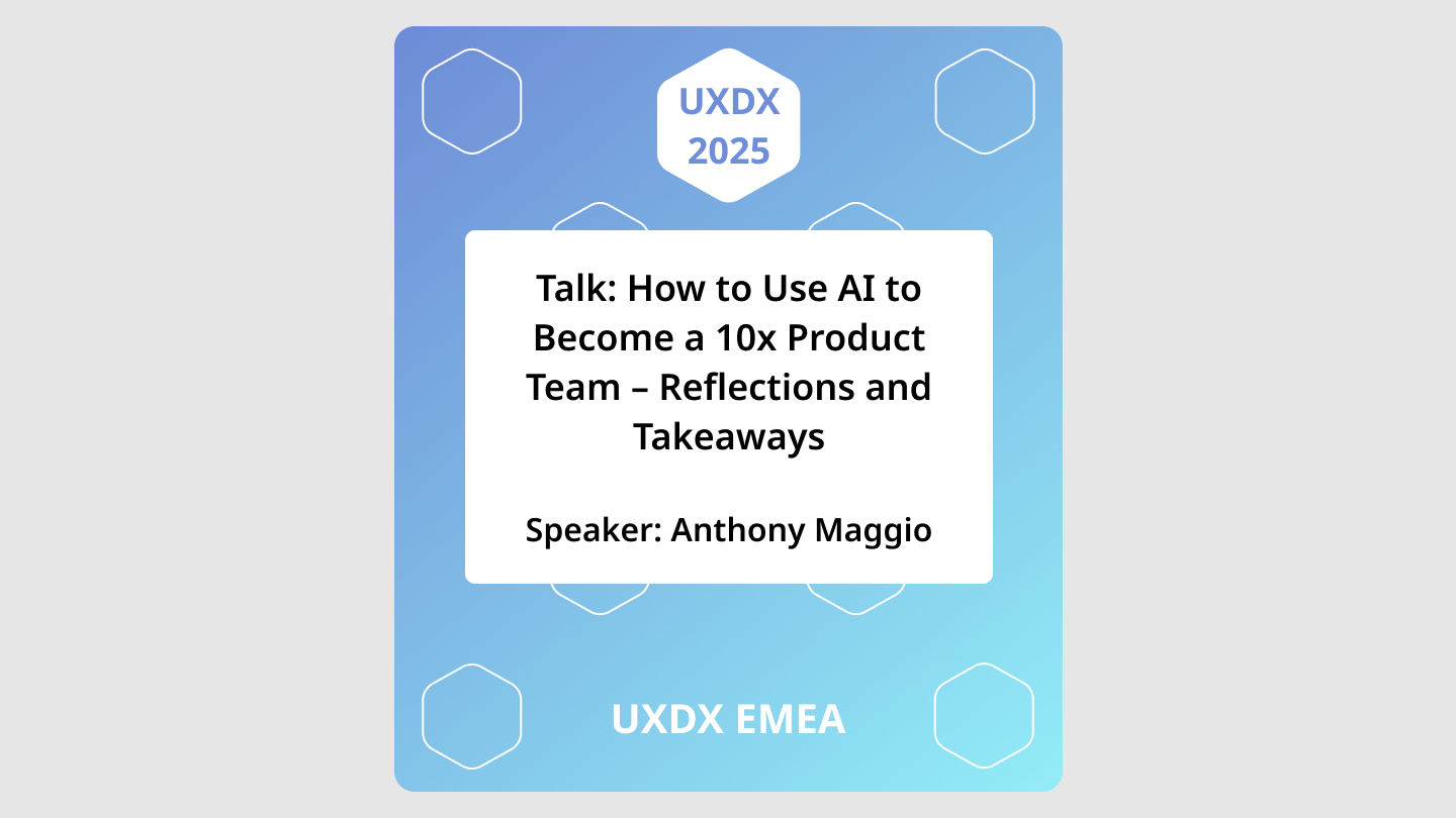 Speaker: Anthony Maggio (VP & Head of Product Management) Every so often, a talk comes along that hits the right balance between inspiration and practicality. “How to use AI to become a 10x Product Team” is one of those. It’s…